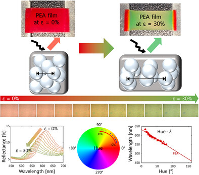 [45] Hue-resolved strain sensing in mechanochromic colloidal photonic films